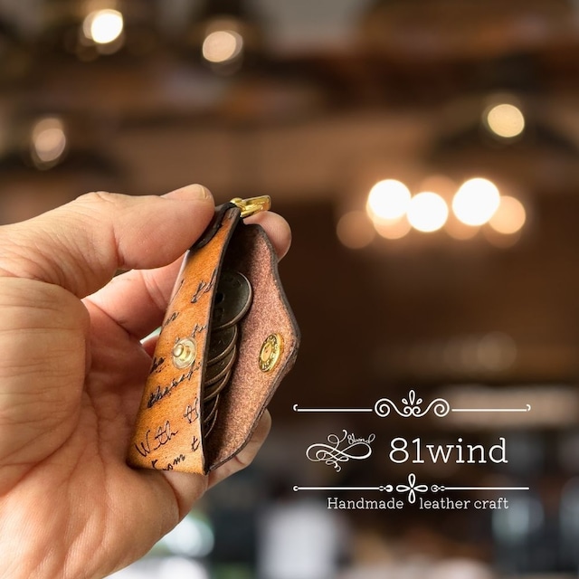 • 【81wind】 極小 ミニ財布 革 メンズ レディース 男女兼用 本革 小銭入れ付き コンパクト ちび財布 【全面カリグラフィー】