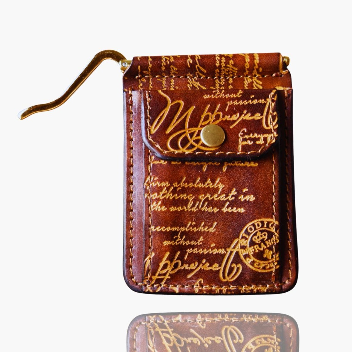 【81wind】 マネークリップ 財布 革 カード収納 札バサミ 小銭入れ 無し 薄い 薄型 本革 【全面カリグラフィー】 | 81wind-ハイウインド