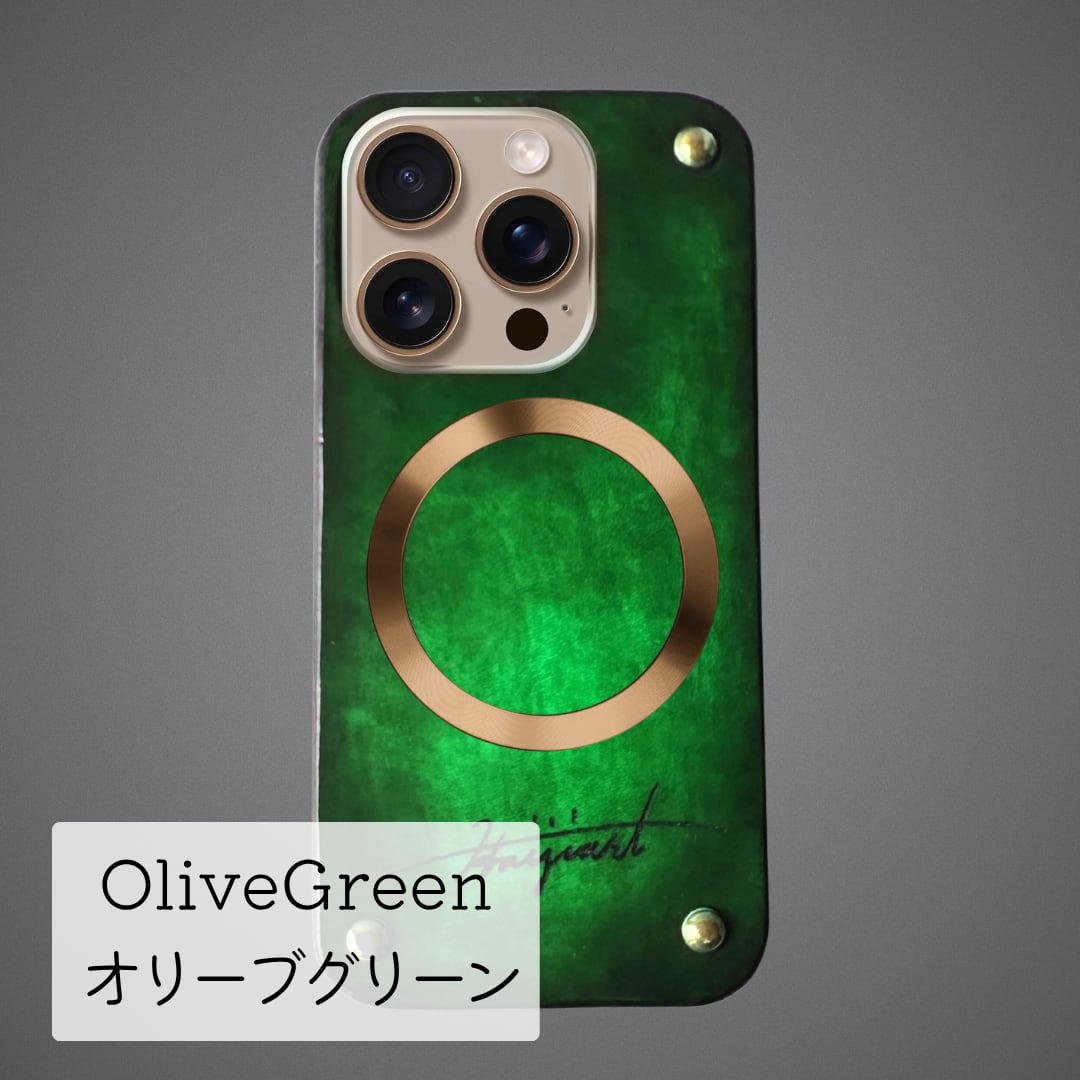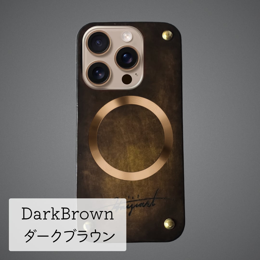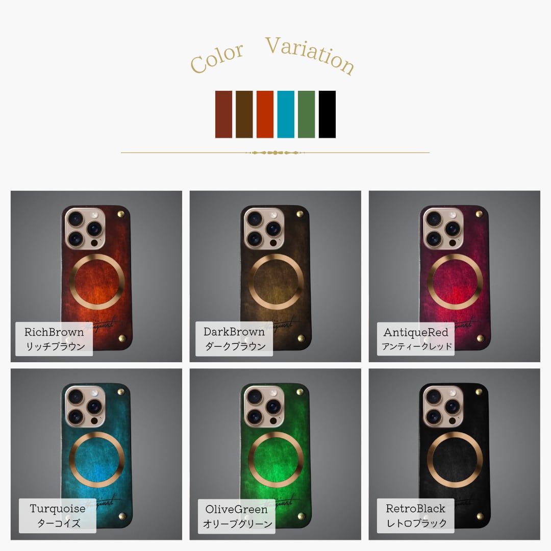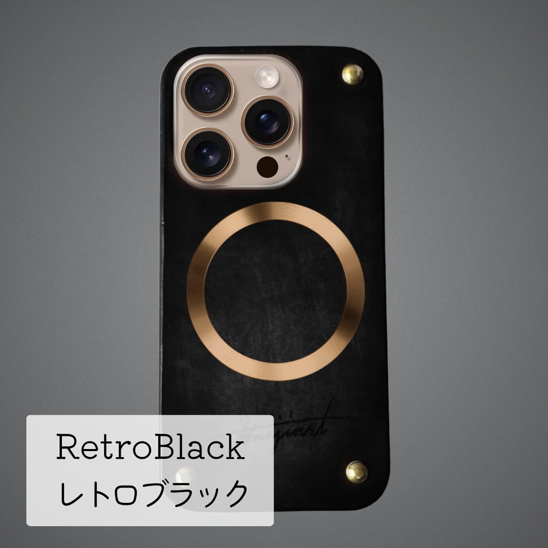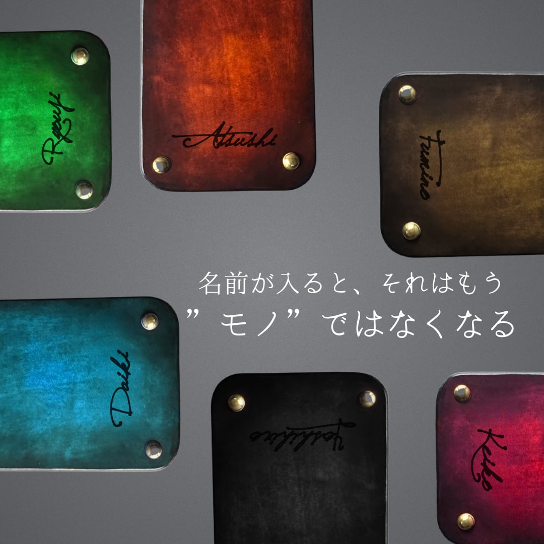 革の破れや跡残りを防ぐため、強力な接着剤ではなく再調整できる粘着シールで固定しています。